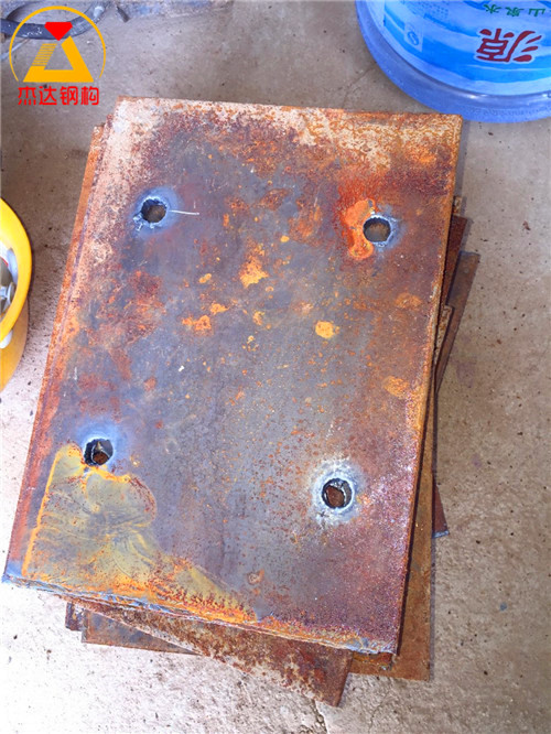 穿墻預埋件通常沿墻體頂端均勻間隔布置,配合膨脹螺栓或化學螺栓加固固定。此工藝主要解決在原有建筑沒有預留預埋件情況下的施工需求,常見位置包括水槽邊或圈梁部位。以下圖片來自江蘇杰達鋼結構工程有限公司在山東濰坊馳騁實業有限公司倉間罩棚施工現場,展示了穿墻預埋件的具體施工過程。