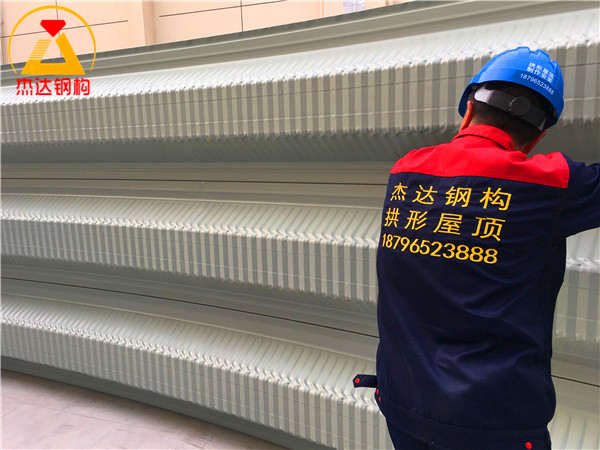本次工程由杰達鋼構團隊全面負責,包括拱形屋頂的壓型制作安裝作業,三道通長采光帶的布局,以及兩側山墻瓦的壓型安裝等關鍵環節。施工過程規范,工期緊湊,自2024年4月2日正式開工,于4月14日順利竣工。