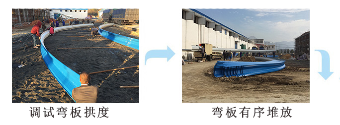 3.施工現(xiàn)場(chǎng)要在建筑旁留有一定空地(其面積視工程大小而定)作為放自動(dòng)滾壓機(jī)車拖車制作拱板和堆放成型后的拱板用地,當(dāng)屋面跨度較大時(shí)吊車設(shè)在室內(nèi)吊裝,因此施工要在山墻處留出入口。具體施工方案與土建施工單位協(xié)商確定。