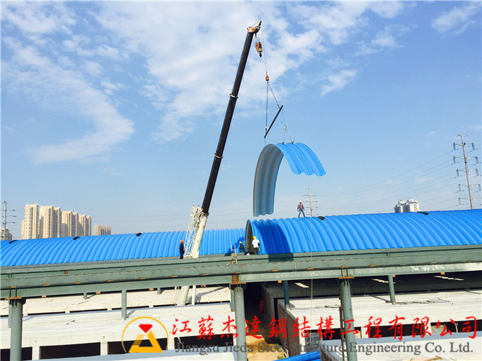 此外,該拱形屋頂在抗風(fēng)、抗震方面表現(xiàn)出較好的性能。拱形結(jié)構(gòu)的受力方式使其能有效抵抗外部環(huán)境影響,提高建筑的使用壽命。施工現(xiàn)場管理嚴格,確保了工程進度和安全規(guī)范。