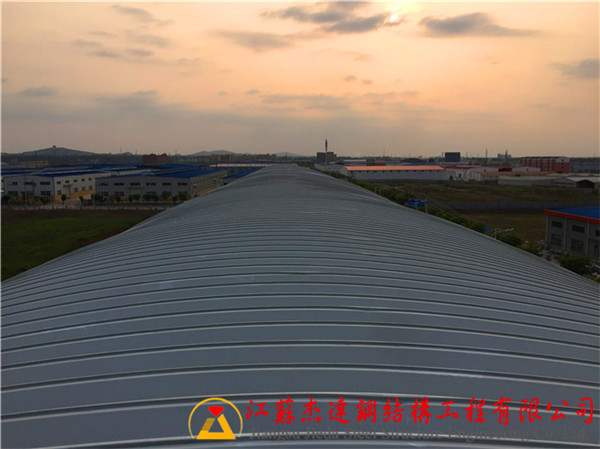 安徽安天食品糧庫拱形屋頂安裝工程采用彩涂卷材和聚氨酯保溫層,結構設計合理,施工周期合理,保障了項目順利完成。