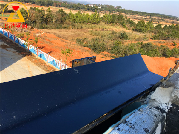 托板部分通過焊接固定在牛腿型H鋼上,形成穩固的支撐結構。這種結構不僅保證了拱形屋頂的承載能力,也方便了后續屋面板的安裝和固定。
