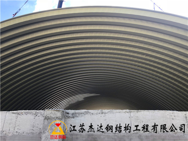 近日,由江蘇杰達鋼結構工程有限公司承建的遼寧省某糧食儲備庫倉間罩棚拱形屋面工程順利完工,具備優良的防風防雨性能,展示了杰達鋼構在糧食倉儲領域的工程實力。工程名稱...