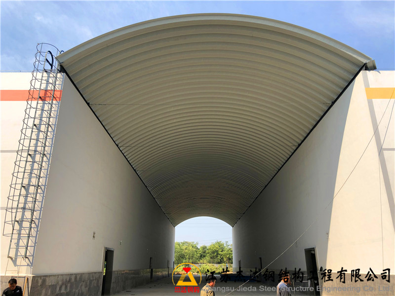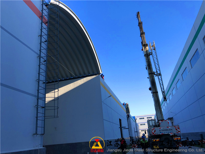 近日,由江蘇杰達鋼結構工程有限公司承建的遼寧省某糧食儲備庫倉間罩棚拱形屋面工程順利完工,具備優良的防風防雨性能,展示了杰達鋼構在糧食倉儲領域的工程實力。工程名稱...