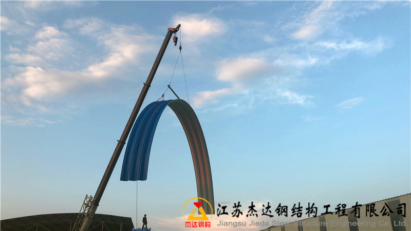 近日,由江蘇杰達鋼結構工程有限公司承建的遼寧省某糧食儲備庫倉間罩棚拱形屋面工程順利完工,具備優良的防風防雨性能,展示了杰達鋼構在糧食倉儲領域的工程實力。工程名稱...