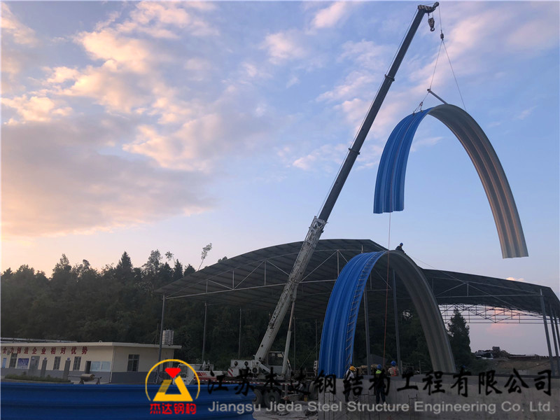 杰達鋼構承接的云南保山華新水泥料棚項目,采用拱形波紋鋼屋蓋結構,工期緊湊、結構穩定,展現了其在工業建筑領域的專業施工能力。工程名稱:華新水泥料棚拱形屋面項目建設...