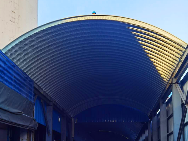 金屬拱形屋頂結(jié)構(gòu)安裝完成,等待后續(xù)質(zhì)量驗收。