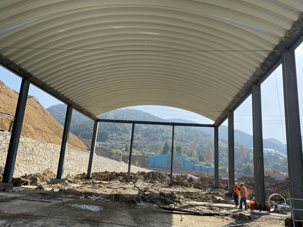 本項目體現了拱形屋頂結構輕巧、自承能力強、安裝便捷等優勢。通過采用高強彩涂鋼卷與標準化壓型工藝,施工過程高效有序,有效克服了空間狹小、設備移動受限等現場難點。